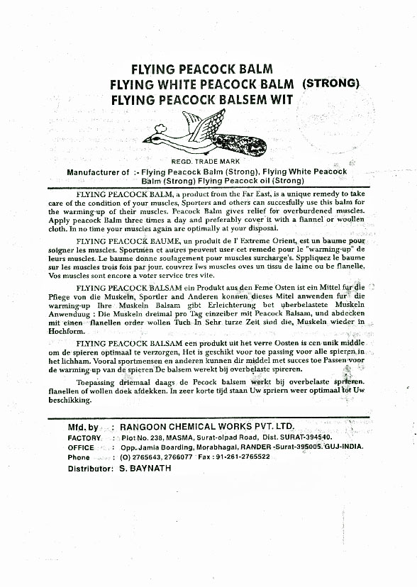 Flying Peacock balsem rood (extra sterk). Te gebruiken om spier, hoofd en rugpijn te bestrijden door de rustgevende werking van Kapoor en de helende werking van Pudina ka Phool.